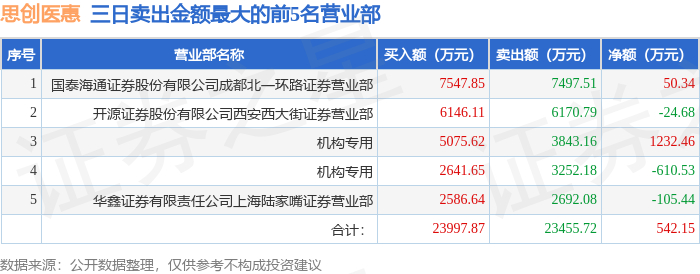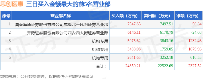 11月19日思创医惠(300078)龙虎榜数据:机构净买入2301.86万元(3日)
