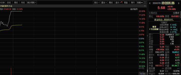 1月13日,AI医疗概念持续拉升,思创医惠(300078)20CM涨停。截至发稿,封单金额超9亿元。