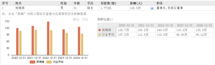 据东方财富网数据,数码视讯董事长郑海涛2024年所获薪酬为125.9万元,相较上年薪酬115.2万元涨薪9.29%。