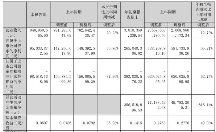 其中2025年第三季度,易成新能营业收入为9.41亿元,同比增长20.23%;归母净利润为-9503.39万元,同比增长35.96%;扣非归母净利润为-9851.81万元,同比增长37.20%;基本每股收益-0.05元。