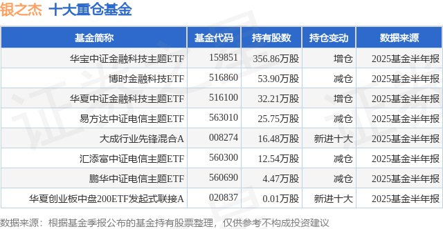 重仓银之杰的公募基金请见下表: