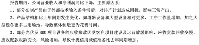 二是产品结构发生变化。上半年塔器设备和大型设备占比增加,这类产品工序复杂。大型设备占用场地时间更长,整体制造周期被拉长。