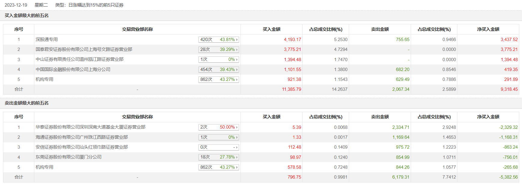 金刚光伏12月19日涨16.16%,全天换手率达19.46%,振幅达19.95%。龙虎榜数据显示,营业部席位合计净买入3935.89万元。其中,机构买入1499.96万元,卖出1473.75万元,合计净买入26.22万元。此外,深股通专用、国泰君安证券上海号文路证券营业部分别买入4193.17万元、3775.21万元;华泰证券深圳深南大道基金大厦证券营业部、海通证券广州珠江西路证券营业部分别卖出2334.71万元、1169.64万元。