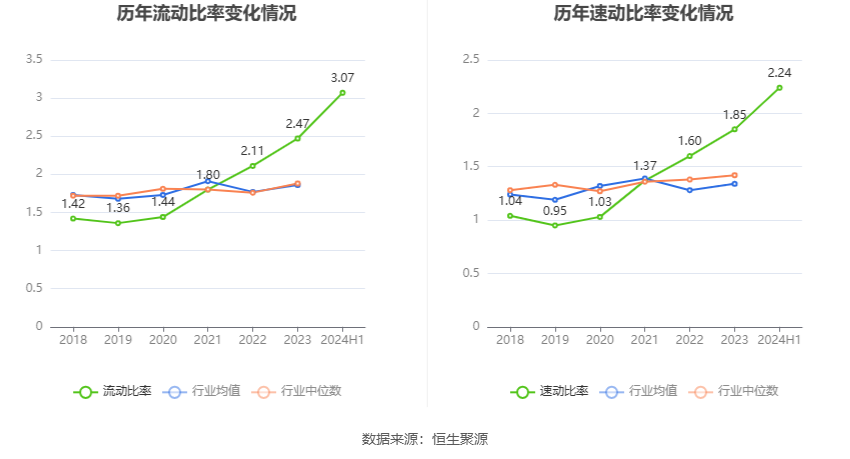 2024年上半年,公司流动比率为3.07,速动比率为2.24。