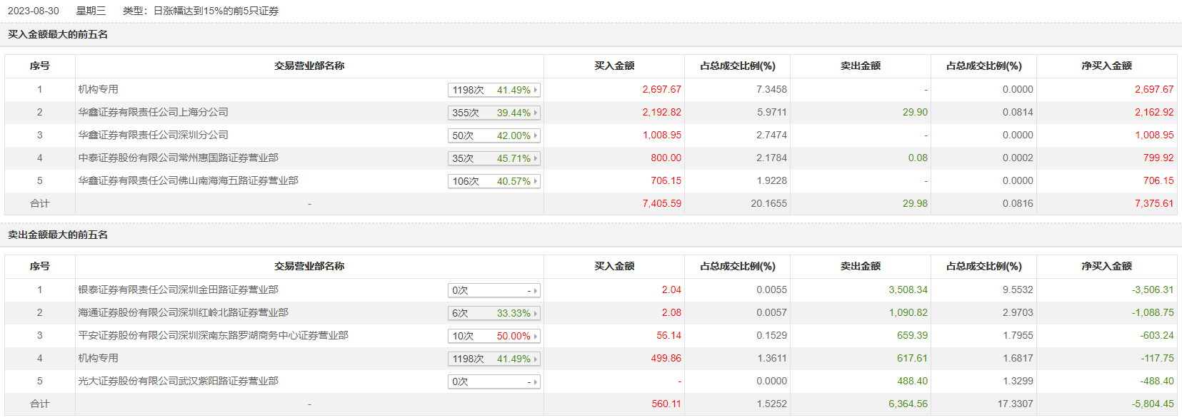 具体来看,机构买入3197.53万元,卖出617.61万元,合计净买入2579.92万元。此外,华鑫证券上海分公司、华鑫证券深圳分公司分别买入2192.82万元、1008.95万元;银泰证券深圳金田路证券营业部、海通证券深圳红岭北路证券营业部分别卖出3508.34万元、1090.82万元。