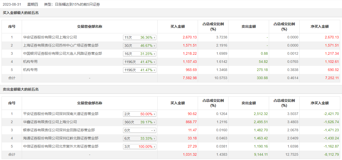 具体来看,机构买入2123.13万元,卖出330.0万元,合计净买入1793.13万元。此外,华安证券上海分公司、上海证券苏州中心广场证券营业部分别买入2670.13万元、1571.51万元;平安证券深圳深南大道证券营业部、华鑫证券上海分公司分别卖出2512.32万元、2495.51万元。