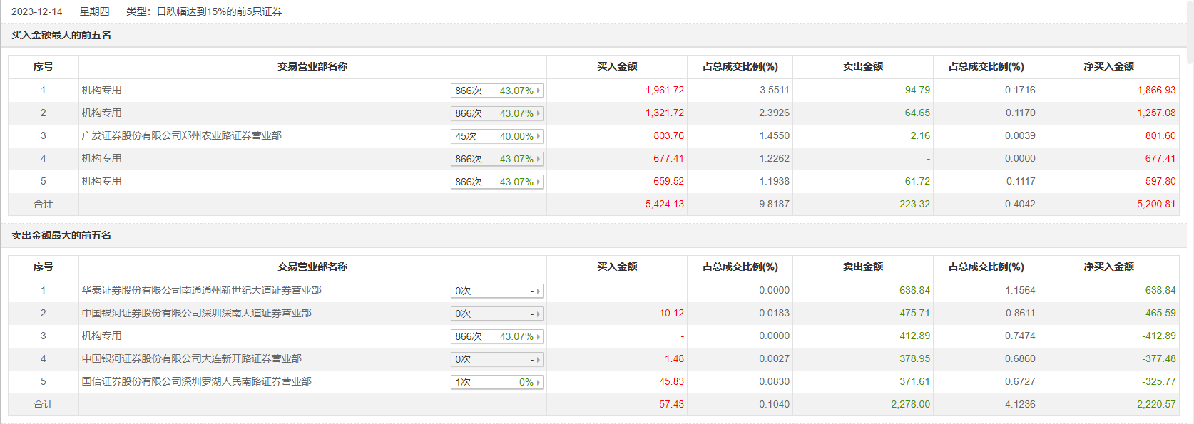 12月14日,智云股份今日跌15.41%,全天换手率达22.04%,振幅达7.66%。龙虎榜数据显示,营业部席位合计净买入2980.24万元。其中,机构买入4620.37万元,卖出634.05万元,合计净买入3986.32万元。此外,华泰证券南通通州新世纪大道证券营业部、中国银河证券深圳深南大道证券营业部分别卖出638.84万元、475.71万元;广发证券郑州农业路证券营业部、国信证券深圳罗湖人民南路证券营业部分别买入803.76万元、45.83万元。