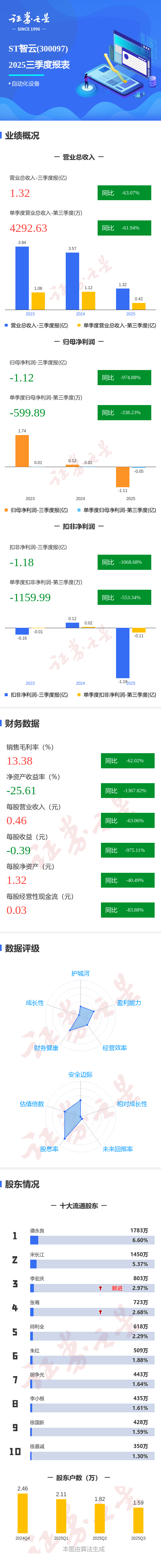 图解ST智云三季报:第三季度单季净利润同比下降338.23%