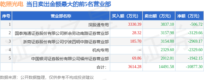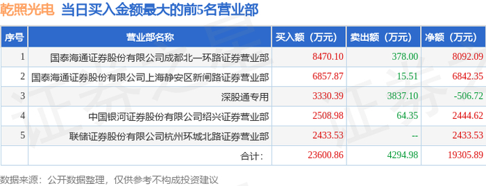 11月7日乾照光电(300102)龙虎榜数据:游资上海超短帮、流沙河上榜