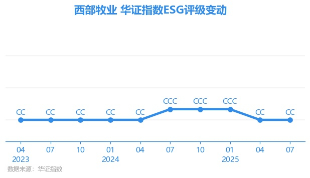 日前,华证指数公布了新一期(2025年7月31日)的ESG评级结果,西部牧业(300106.SZ)获得CC评级(华证指数评级为C起至AAA九档,C为最低档,AAA为其最高一级评级/AA为其第二档),上一期(2025年4月30日)ESG评级为CC。本期ESG评级在156家食品行业A股上市公司中排名第110(上一期排名第116)。