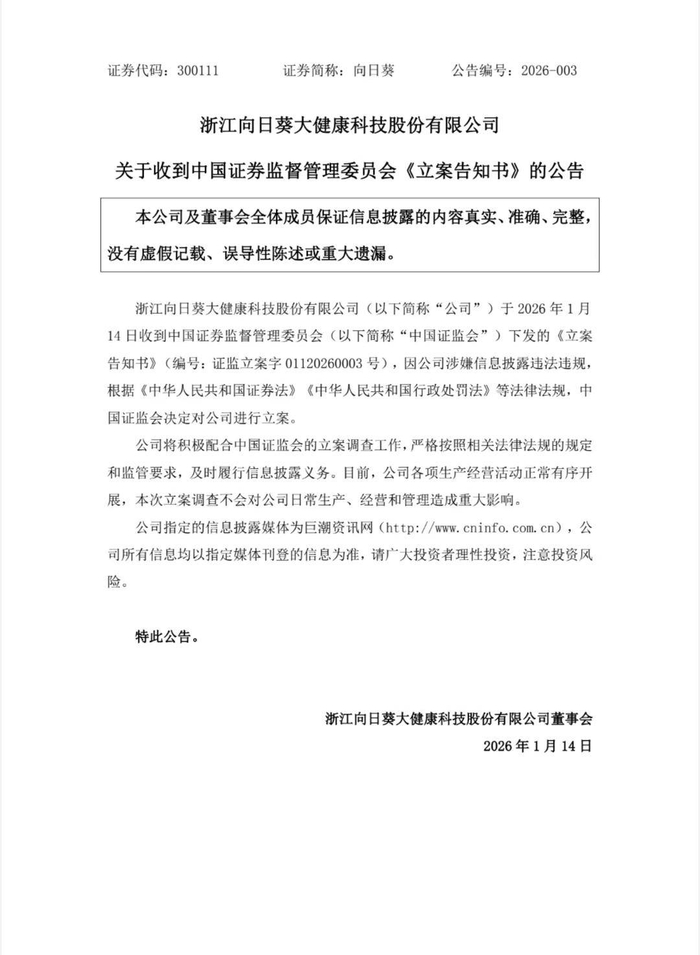 向日葵被立案调查,股价大跌,受损投资者可索赔