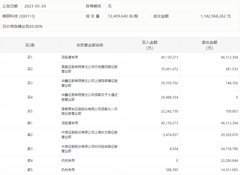 5月29日,顺网科技今日涨停,龙虎榜数据显示,上榜营业部席位全天成交2.99亿元,占当日总成交金额比例为25.28%。其中,买入金额为1.62亿元,卖出金额为1.38亿元,合计净买入2405.18万元。