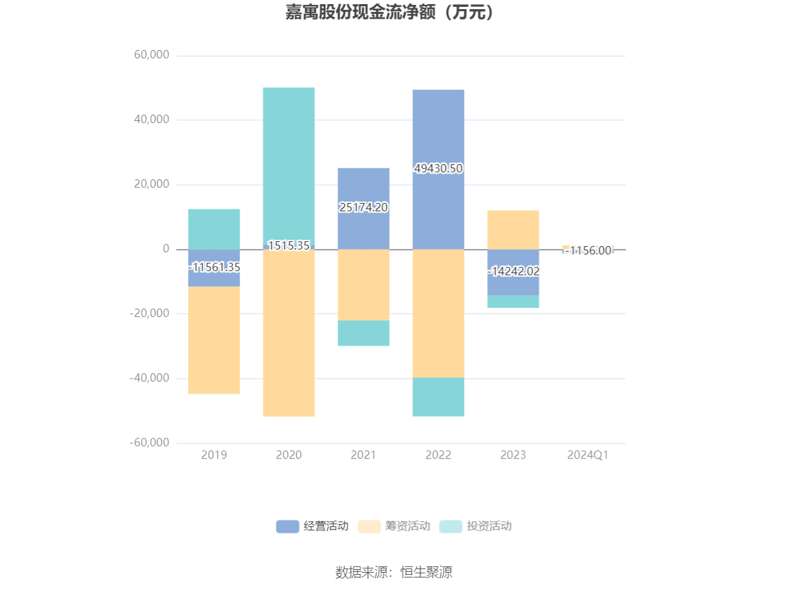 2024年第一季度,公司经营活动现金流净额为-1156.00万元,同比增加1.66亿元,主要系上年同期,公司购买商品接受劳务支付的现金较多所致;筹资活动现金流净额1222.58万元,同比减少1.30亿元;投资活动现金流净额-78.38万元,上年同期为-1673.2万元。