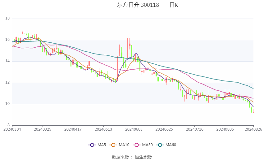 中证智能财讯 东方日升(300118)8月27日披露2024年半年度报告。2024年上半年,公司实现营业收入104.59亿元,同比下降40.59%;归母净利润亏损9.63亿元,上年同期盈利8.61亿元;扣非净利润亏损10.61亿元,上年同期盈利8.38亿元;经营活动产生的现金流量净额为-44.66亿元,上年同期为7.71亿元;报告期内,东方日升基本每股收益为-0.8472元,加权平均净资产收益率为-6.58%。