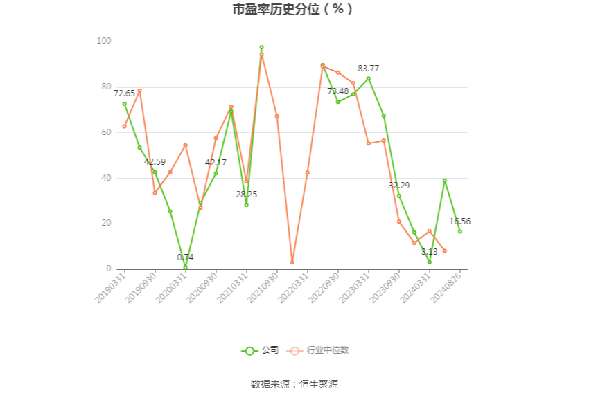 市盈率为负时,不显示当期分位数,会导致折线图中断。