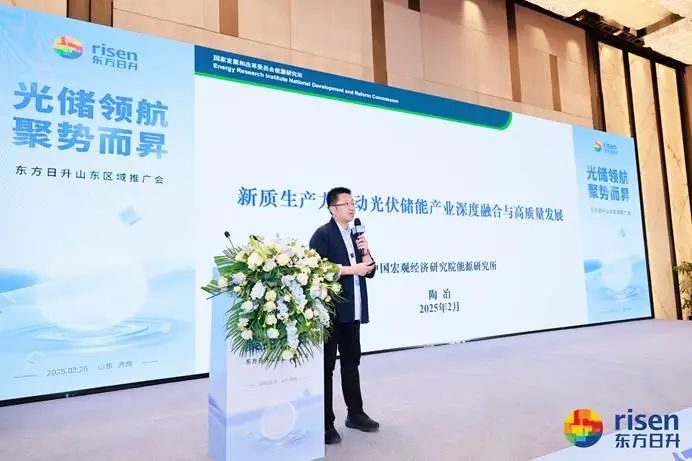 中国宏观经济研究院能源研究所可再生能源发展中心副主任陶冶,山东省太阳能行业协会常务副会长兼秘书长、山东省新能源产业协会光伏专委会主任张晓斌,山东省新能源产业协会储能专业委员会常任理事、正高工程师刘军等发表主题演讲。东方日升总裁伍学纲先生为大会致辞。