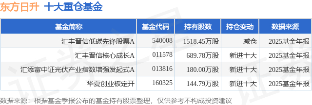 重仓东方日升的公募基金请见下表: