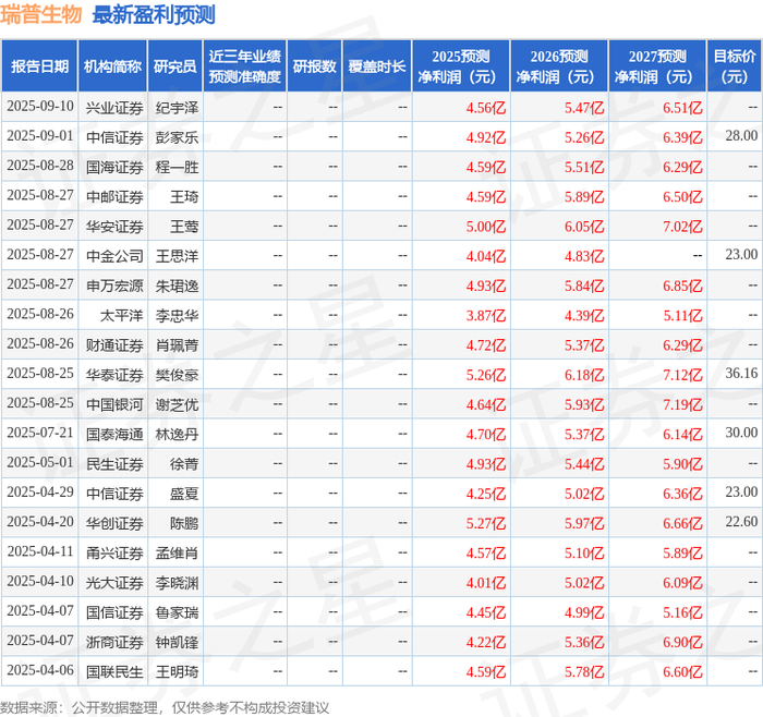 瑞普生物2025Q1归母净利润达1.16亿元(同比+32.45%)。