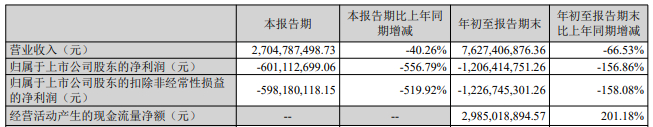 中国经济网北京10月30日讯 智飞生物(300122.SZ)近日发布了2025年三季度报告。今年前三季度,公司营业收入为76.27亿元,同比减少66.53%;归属于上市公司股东的净利润为-12.06亿元,同比减少156.86%;归属于上市公司股东的扣除非经常性损益的净利润为-12.27亿元,同比减少158.08%;经营活动产生的现金流量净额为29.85亿元,同比增长201.18%。