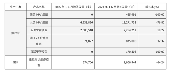 这一政策变化进一步挤压了付费疫苗的市场空间,智飞生物代理的HPV疫苗批签发量大幅下降。2025年上半年,九价HPV疫苗批签发423.88万支,同比下降76.8%;四价HPV疫苗批签发量更是直接归零。