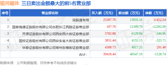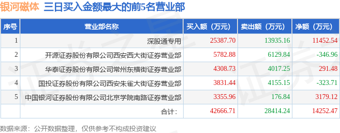 10月14日银河磁体(300127)龙虎榜数据:北向资金净买入1.15亿元(3日)