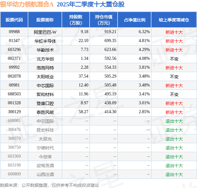 根据2025基金半年报公募基金重仓股数据,重仓该股的公募基金共1家,其中持有数量最多的公募基金为银华基金的银华动力领航混合A。银华动力领航混合A目前规模为1.08亿元,最新净值0.9452(10月16日),较上一交易日上涨0.05%,近一年上涨28.01%。该公募基金现任基金经理为苏静然 向伊达。苏静然在任的基金产品包括:银华明择多策略定期开放混合,管理时间为2017年8月11日至今,期间收益率为95.43%;银华战略新兴定开混合,管理时间为2017年10月30日至今,期间收益率为48.03%;银华领先策略混合,管理时间为2017年10月30日至今,期间收益率为-4.83%;银华价值优选混合,管理时间为2017年10月30日至今,期间收益率为-18.73%。向伊达在任的基金产品包括:银华盛利混合发起式A,管理时间为2019年12月11日至今,期间收益率为103.84%;银华战略新兴定开混合,管理时间为2022年4月27日至今,期间收益率为4.11%;银华领先策略混合,管理时间为2022年8月2日至今,期间收益率为-29.61%;银华核心动力精选混合A,管理时间为2022年8月18日至今,期间收益率为-9.21%。