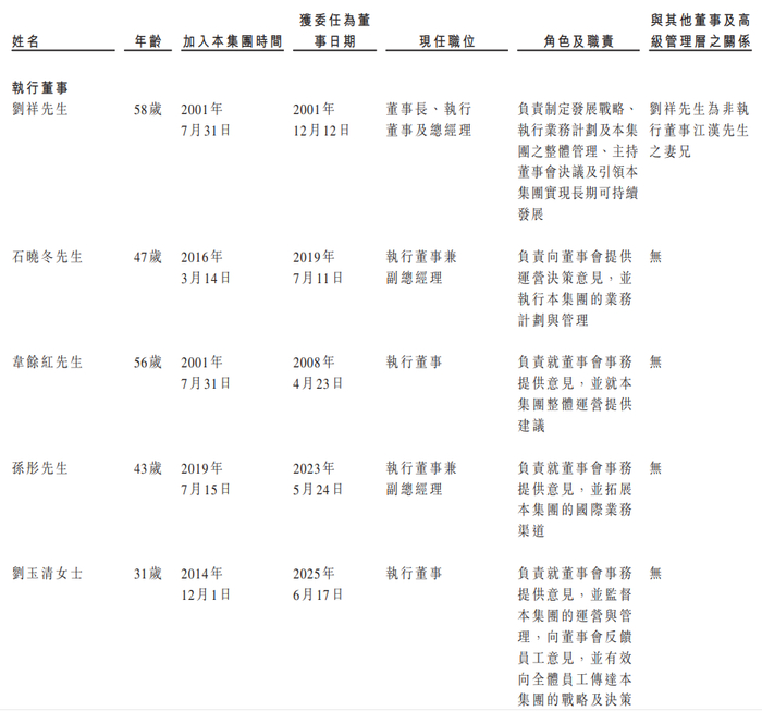 公司董事会由十名董事组成,包括五名执行董事、一名非执行董事及四名独立非执行董事。其中刘祥为董事长、执行董事兼总经理,其主要负责制定发展战略、执行业务计划及公司之整体管理、主持董事会决议及引领公司实现长期可持续发展。