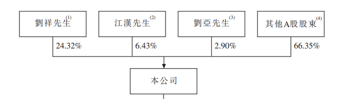 刘祥先生乃创始人及公司单一最大股东。截至最后实际可行日期,刘祥先生持有137,946,987股A股,约占公司已发行股本总额的24.32%。