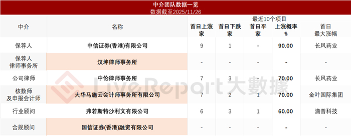 来源:招股书据LiveReport大数据统计,新国都中介团队共计6家,其中保荐人1家,近10家保荐项目数据表现出色;公司律师共计1家,综合项目数据表现尚可。整体而言中介团队历史数据表现稳妥。