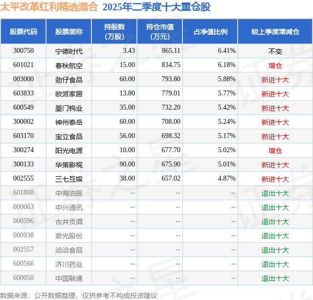 根据2025基金半年报公募基金重仓股数据,重仓该股的公募基金共6家,其中持有数量最多的公募基金为太平基金的太平改革红利精选混合。太平改革红利精选混合目前规模为1.35亿元,最新净值1.7035(9月30日),较上一交易日上涨0.81%,近一年上涨35.55%。该公募基金现任基金经理为徐闯。徐闯在任的基金产品包括:太平智远三个月定开股票发起式,管理时间为2023年7月5日至今,期间收益率为34.86%;太平先进制造混合发起式A,管理时间为2024年4月26日至今,期间收益率为63.68%;太平MSCI香港价值增强A,管理时间为2024年11月13日至今,期间收益率为35.15%。