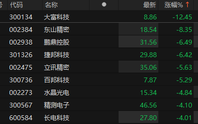 苹果概念股走弱 大富科技跌超12%