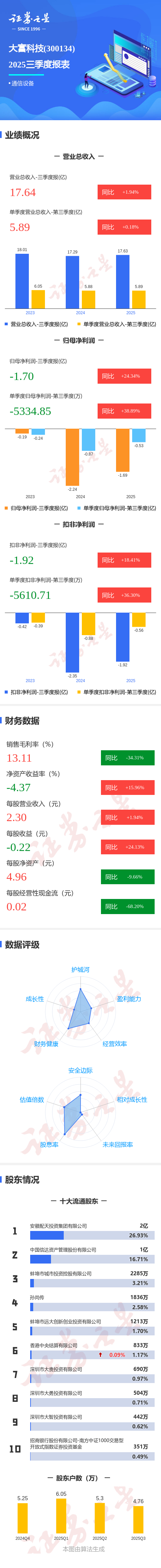 图解大富科技三季报:第三季度单季净利润同比增长38.89%
