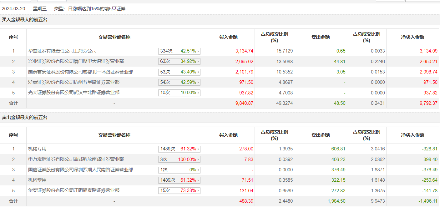 具体来看,机构买入349.51万元,卖出928.96万元,合计净卖出579.45万元。此外,华鑫证券上海分公司、兴业证券厦门湖里大道证券营业部分别买入3134.74万元、2695.02万元;申万宏源证券有限公司盐城解放南路证券营业部、国信证券深圳罗湖人民南路证券营业部分别卖出406.23万元、376.49万元。