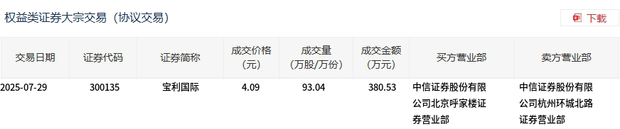 宝利国际今日大宗交易折价成交93.04万股,成交额380.53万元