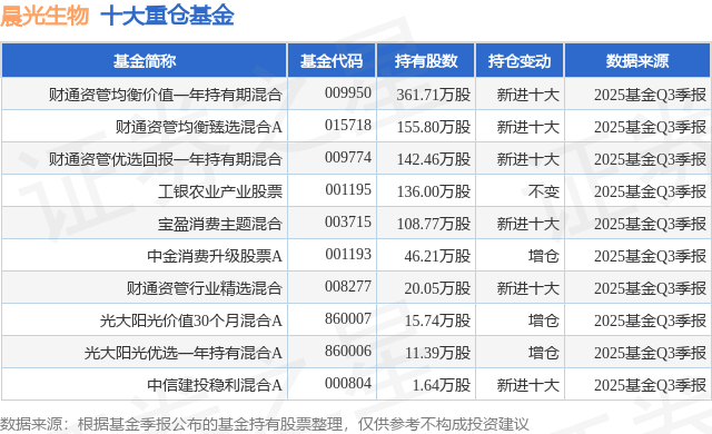 重仓晨光生物的前十大公募基金请见下表: