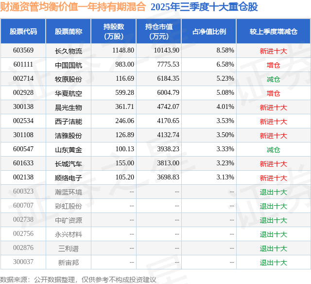 财通资管均衡价值一年持有期混合的前十大重仓股如下: