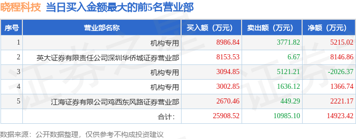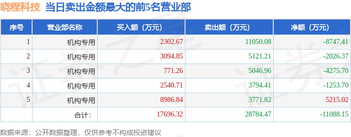 10月9日晓程科技(300139)龙虎榜数据:机构净卖出9721.41万元