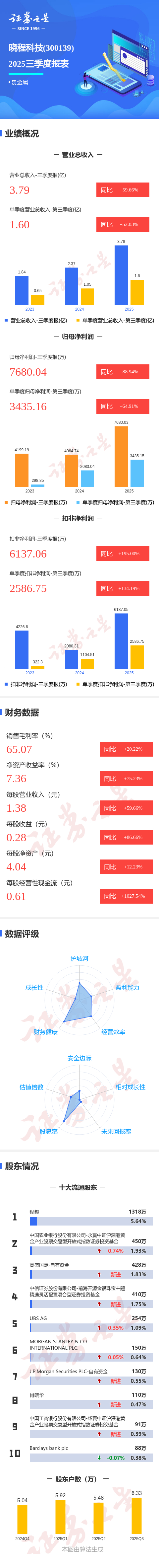 图解晓程科技三季报:第三季度单季净利润同比增长64.91%