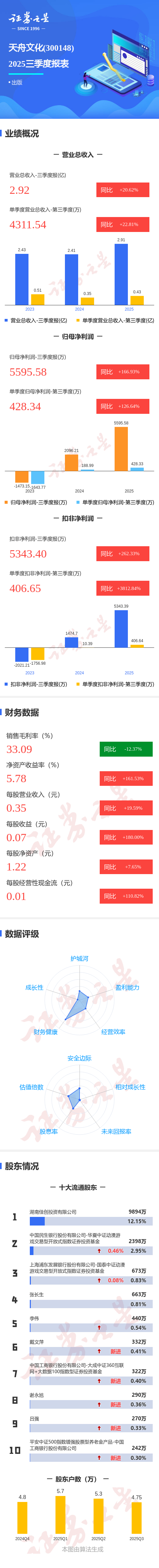 图解天舟文化三季报:第三季度单季净利润同比增长126.64%
