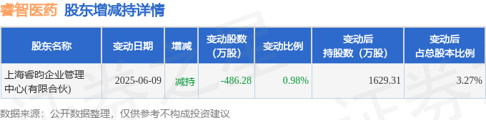 该股近半年内有股东持股变动,合计净减持486.28万股,股东增减持明细如下表: