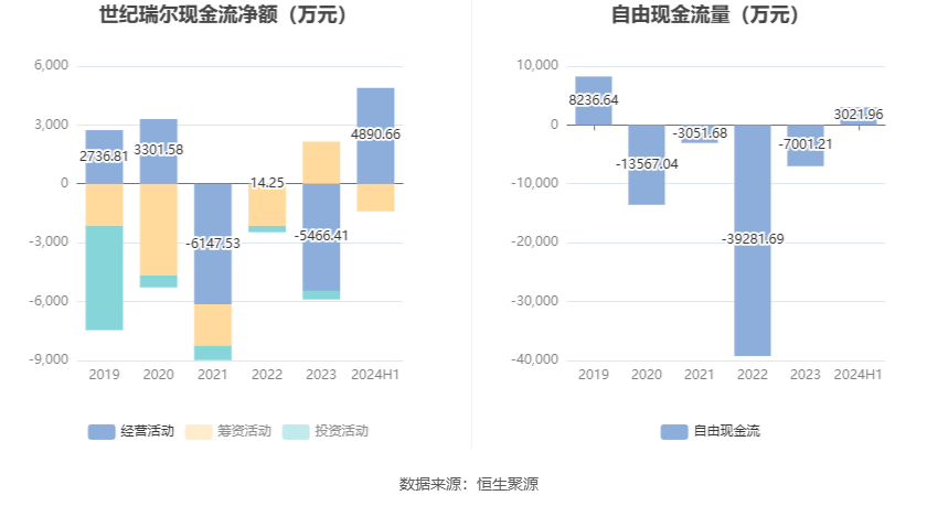 进一步统计发现,2024年上半年公司自由现金流为3021.96万元,上年同期为-6385.76万元。