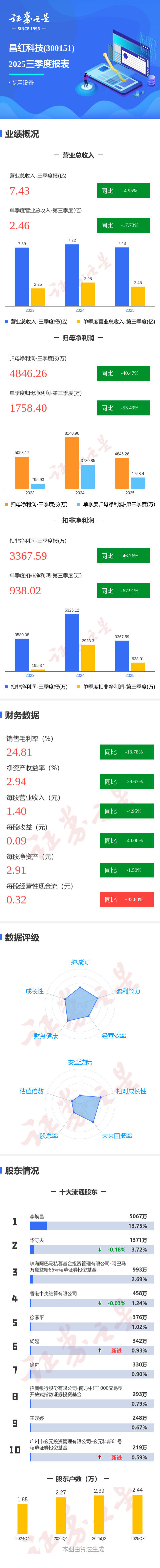 图解昌红科技三季报:第三季度单季净利润同比下降53.49%