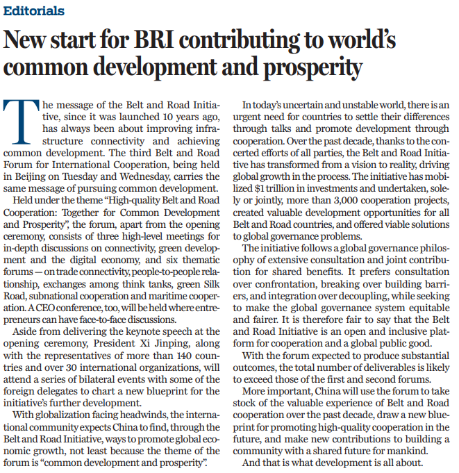 原文标题:New start for BRI contributing to world’s common development and prosperity