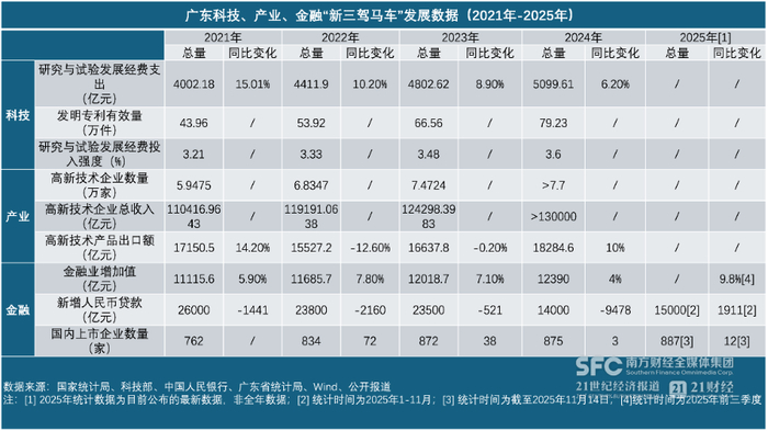 从近年的分项数据中可以明显看见,广东将更多目光投向科技及其背后牵引的高新技术产业,并依靠金融创新进一步加快各类资源配置效率。