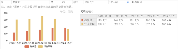 据东方财富网数据,秀强股份副总经理赵庆忠2020-2024年分别领薪119.9万、140.2万、161.9万、182.1万和185.4万元,连续四年涨薪。