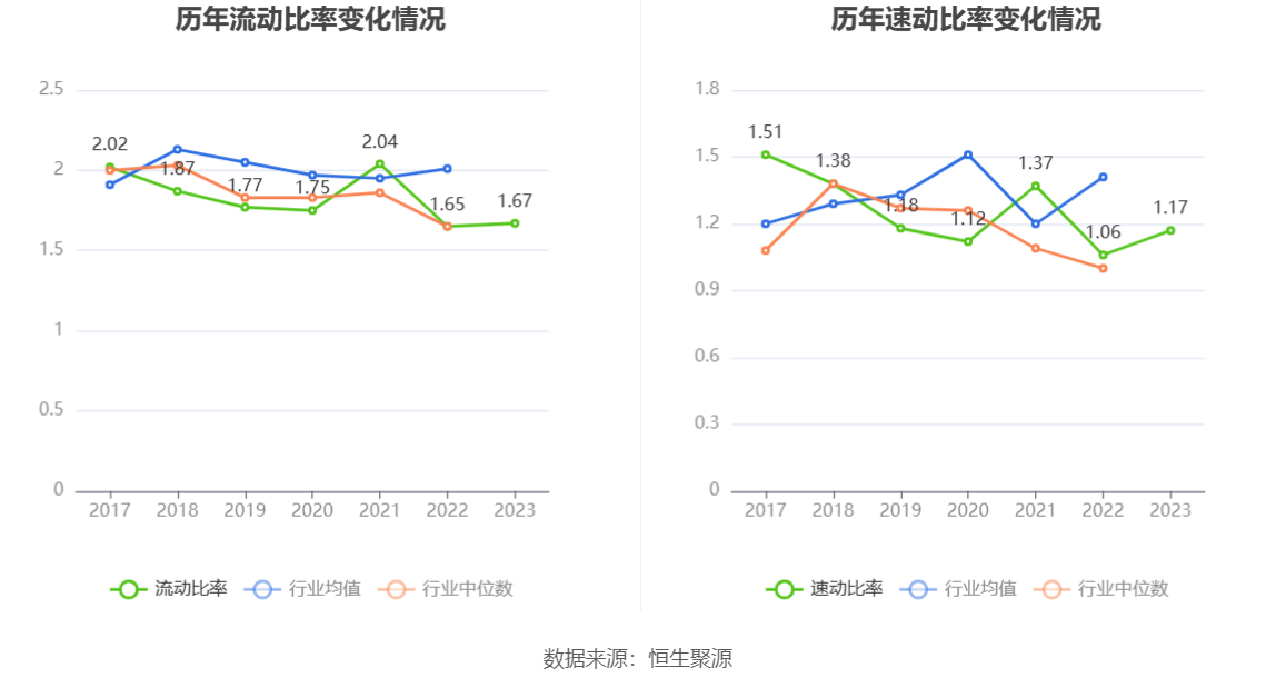 2023年,公司流动比率为1.67,速动比率为1.17。