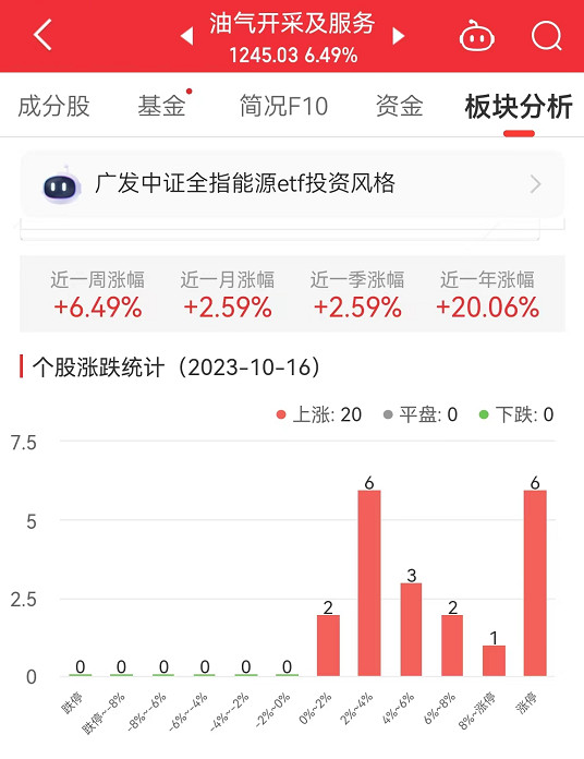 数据显示,截至今日,油气开采及服务板块近一周涨幅6.49%,近一月涨幅2.59%,近一季涨幅2.59%。
