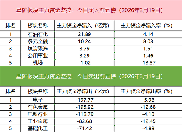 从主力板块资金监控数据来看,石油石化板块主力资金净流入居首。
