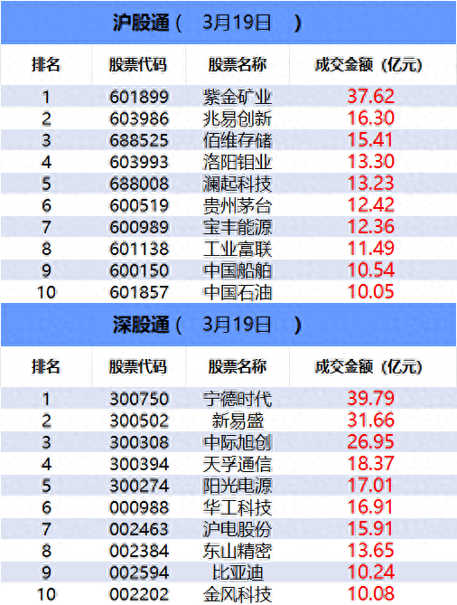 从沪股通前十大成交个股来看,紫金矿业位居首位;兆易创新和佰维存储分居二、三位。