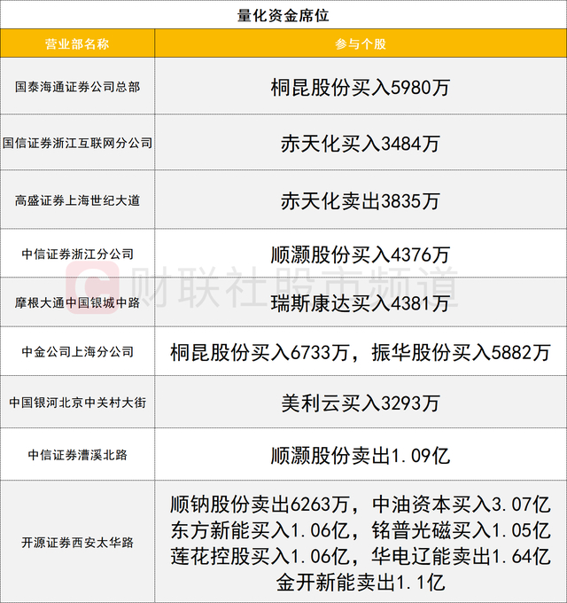 量化资金活跃度较高,中油资本走出4天2板,一家量化资金(开源证券西安太华路)买入3.07亿。